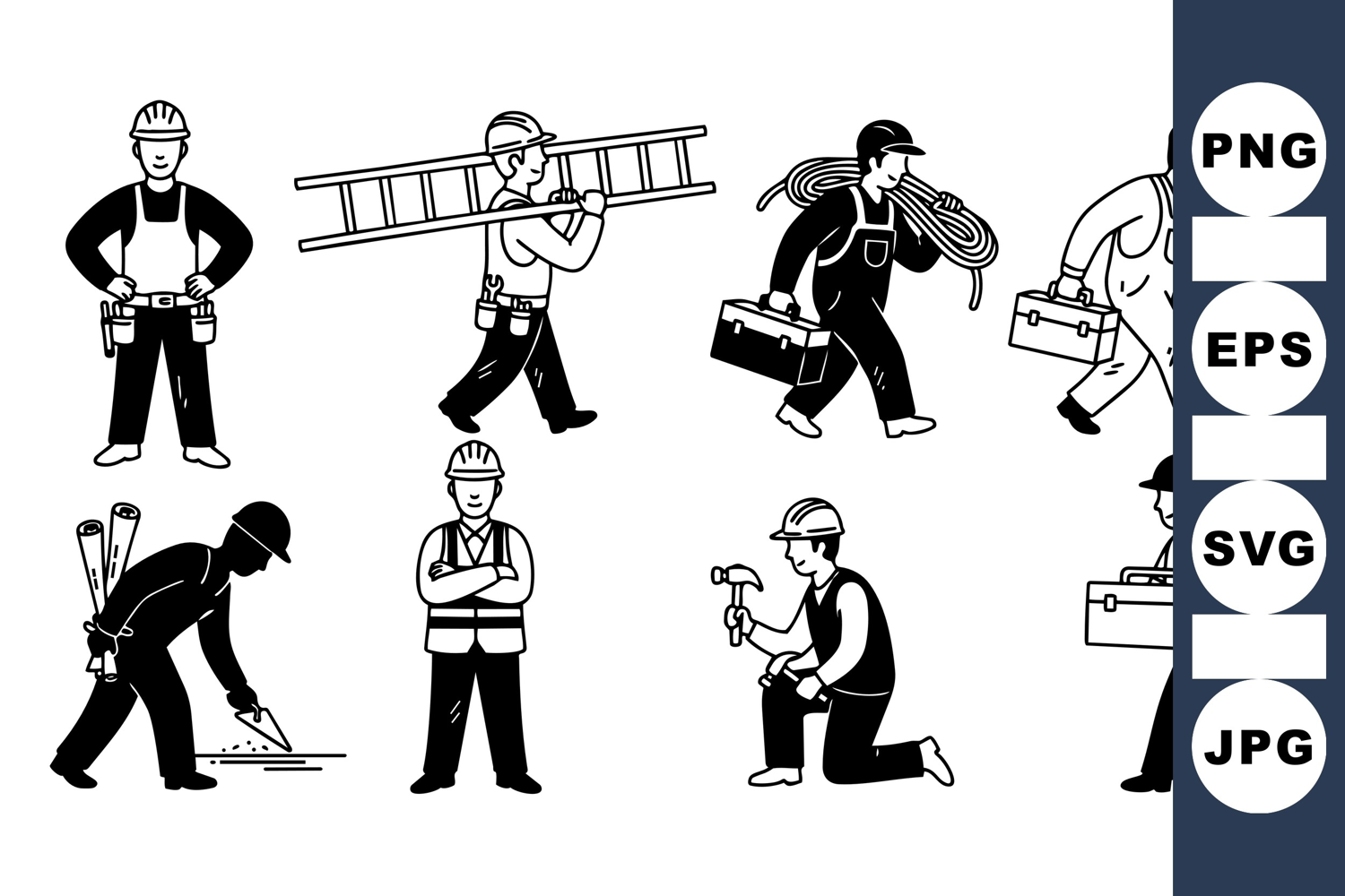 Construction Worker Clipart Builder Vector Manual Labor Clipart Worker Tools Silhouettes Hard Hat Worker Vectors Construction Job Icons Builder Pose Collection Work Gear Silhouette Worker Profession Graphics Industrial Worker Vectors