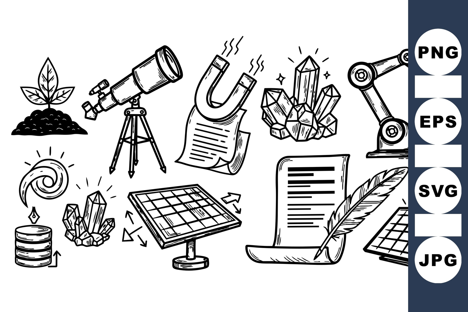 Hand Drawn Icons Crystal Clipart Science Clipart Technology Vector Educational Clipart Collection Robotic Arm Vector Solar Energy Clipart Scientific Illustration Pack Scientific Research Graphics Technology Design Elements