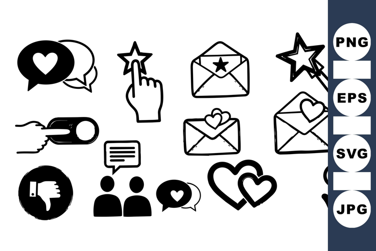 Social Media Icons Svg Clipart Black White Icons Love Heart Symbols Digital Icon Pack User Interaction Icons Social Network Graphics Click Hand Icon Message Envelope Clipart Profile User