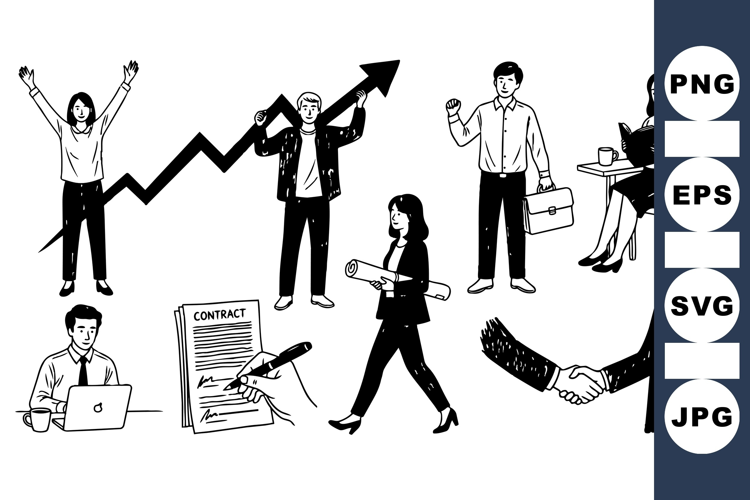 Business Vector Successful Business Teamwork Vector Professional Meeting Clipart Business Contract Graphics Business Handshake Clipart Office Worker Illustrations Corporate Planning Pack Hand Drawn Business Icons Career Growth Illustrations