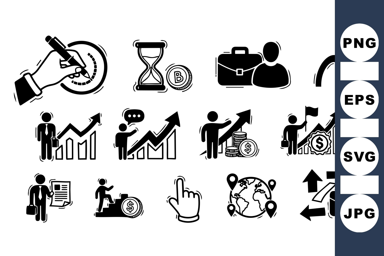 Business Icon Marketing Strategy Financial Success Symbols Professional Office Icons Time Management Graphics Growth Arrow Graphic Global Business Icons Career Development Icons Investment Plan Icons Money And Finance