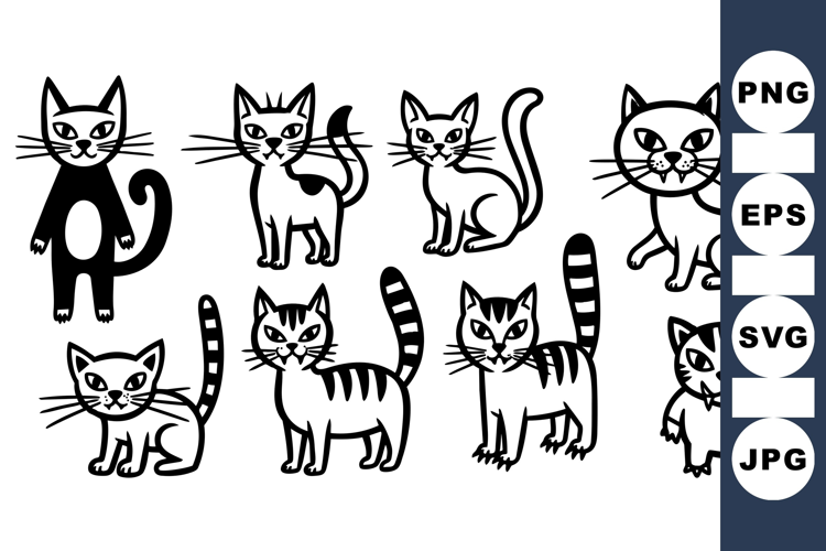 Cat Clipart Animal Vector Hand Drawn Cat Cute Cat Illustrations Cartoon Cat Clipart Black White Cat Pet Animal Graphics Kitty Doodle Pack Cat Character Designs Whiskers Tail Clipart