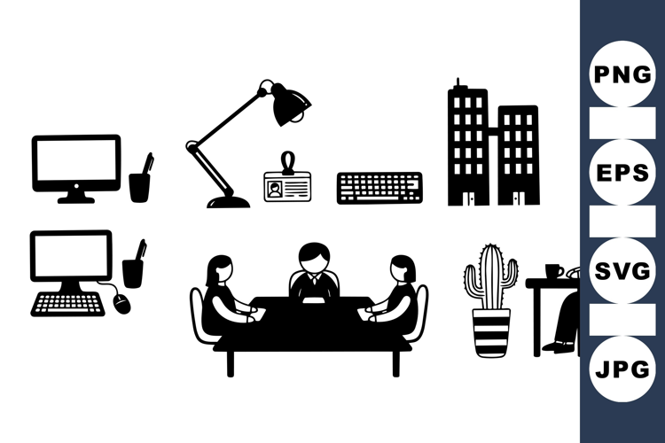 Office Icon Workspace Clipart Business Vector Pack Corporate Meeting Graphics Work From Home Icons Remote Work Graphics Professional Team Illustrations Modern Office Design Desk Supplies Office Furniture Vector