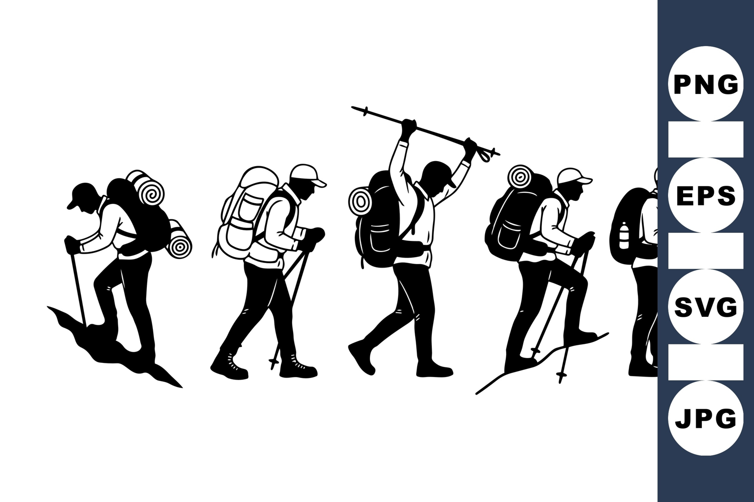 Vector Hiking Silhouettes Pack For Outdoor Design example image 1