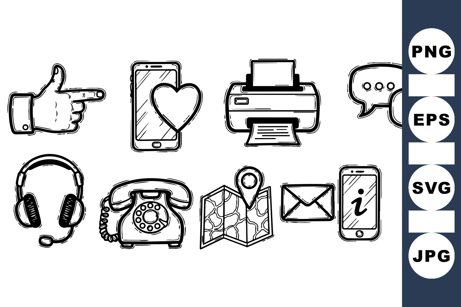 Hand Drawn Icons Customer Service Icons Mobile Phone Icons Communication Vector Vintage Phone Illustration Digital Technology Icons Office Communication Graphics Email Message Graphics Support Head Vector Location Map Icons