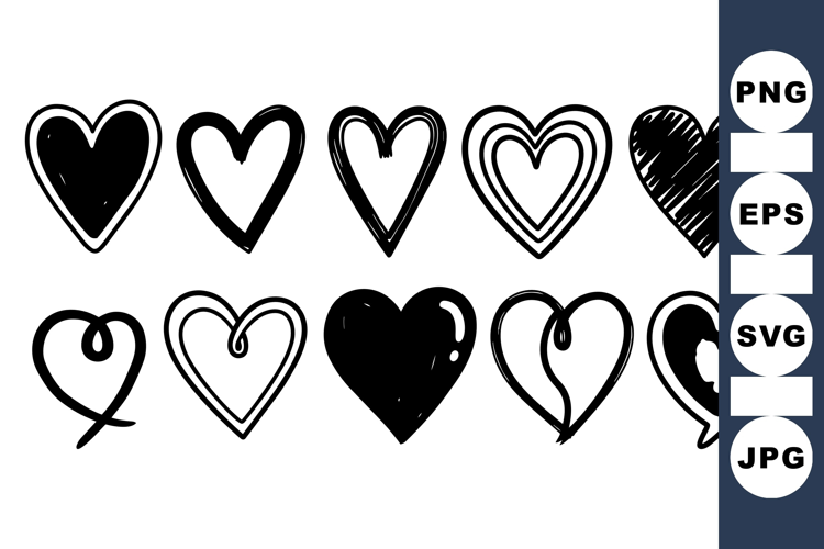 Valentine Clipart Hand Drawn Heart Love Symbol Graphics Black Heart Vectors Romantic Doodle Pack Heart Outline Icons Cute Vector Hearts Sketch Heart Designs Simple Valentine Art Handmade Love