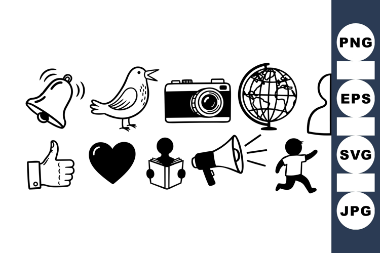Social Media Hand Drawn Icons Vector Icon Notification Icon Black And White Icons Digital Communication Icons Minimalist Icon Pack User Profile Icons Social Network Graphics Internet Symbols