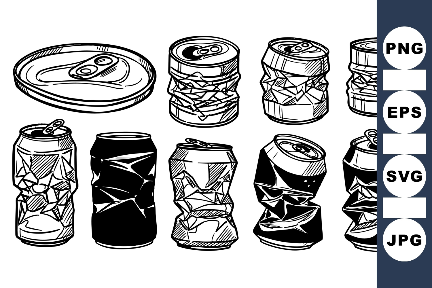 Hand Drawn Crushed Soda Can Vector Pack example image 1