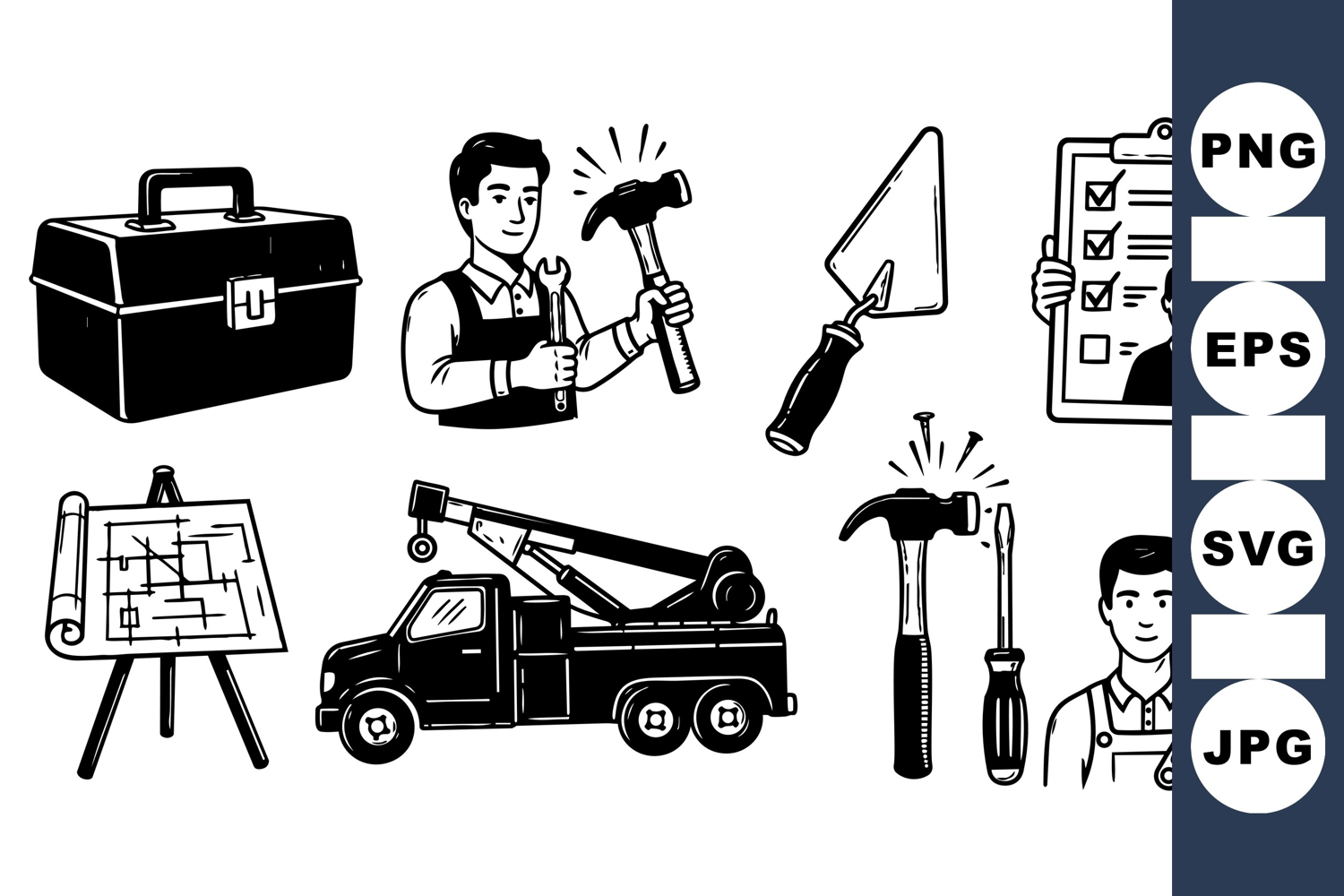 Construction Worker Toolbox Vector Art Building Repair Graphics Handy Tools Clipart Blueprint Plan Clipart Handyman Service Icons Mechanic Tools Vector Worksite Equipment Truck Utility Graphics Repair Maintenance