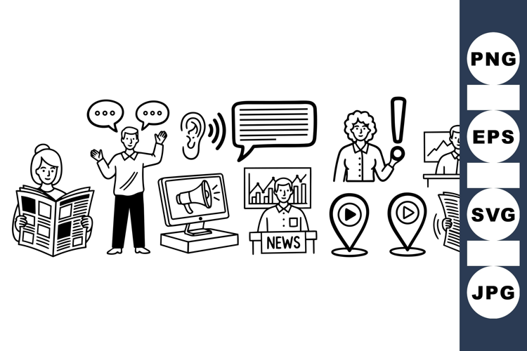 Hand Drawn Icon Social Media Icons News Media Public Announcement Icons Communication Vector Pack News Broadcast Icons Media Press Clipart Journalism Icon Collection Reporter Vector Newsroom Graphic
