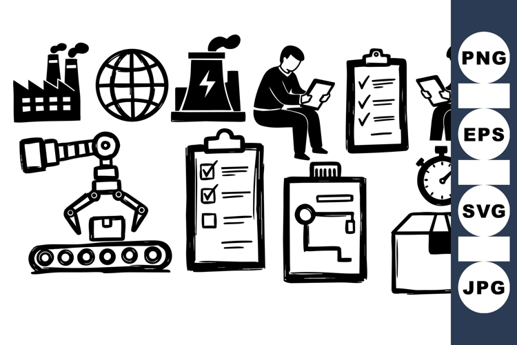 Industrial Process Clipart Industrial Equipment Vector Automation System Icons Shipping Package Icons Factory Workflow Design Assembly Line Graphics Manufacturing Vector Production Planning Clipart Logistics Management Graphics Quality Control Illustrations