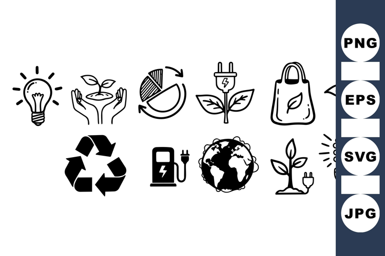 Recycling Symbol Sustainable Design Eco Friendly Icons Energy Saving Icons Green Energy Vector Environmental Icon Pack Plant Growth Illustration Renewable Power Earth Globe Graphics Clean Energy Kit