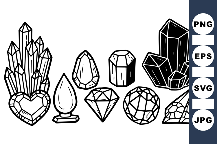 Hand Drawn Crystal Gem Clipart Jewelry Design Precious Stone Clipart Outline Gem Illustrations Faceted Gem Design Geometric Gemstone Black And White Crystals Rock Crystal Collection Vector Gem