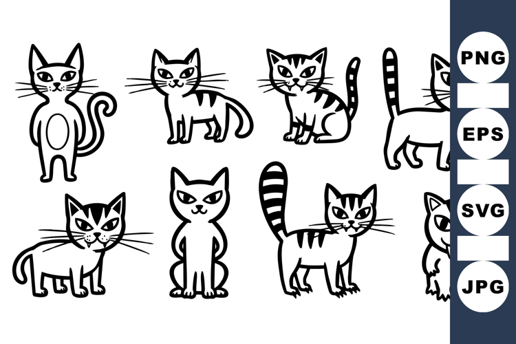 Animal Clipart Cartoon Cat Cat Svg Clipart Hand Drawn Cat Funny Cat Illustrations Pet Clipart Collection Cute Kitten Graphics Digital Cat Drawings Black White Cat Art Whiskers Cat Design