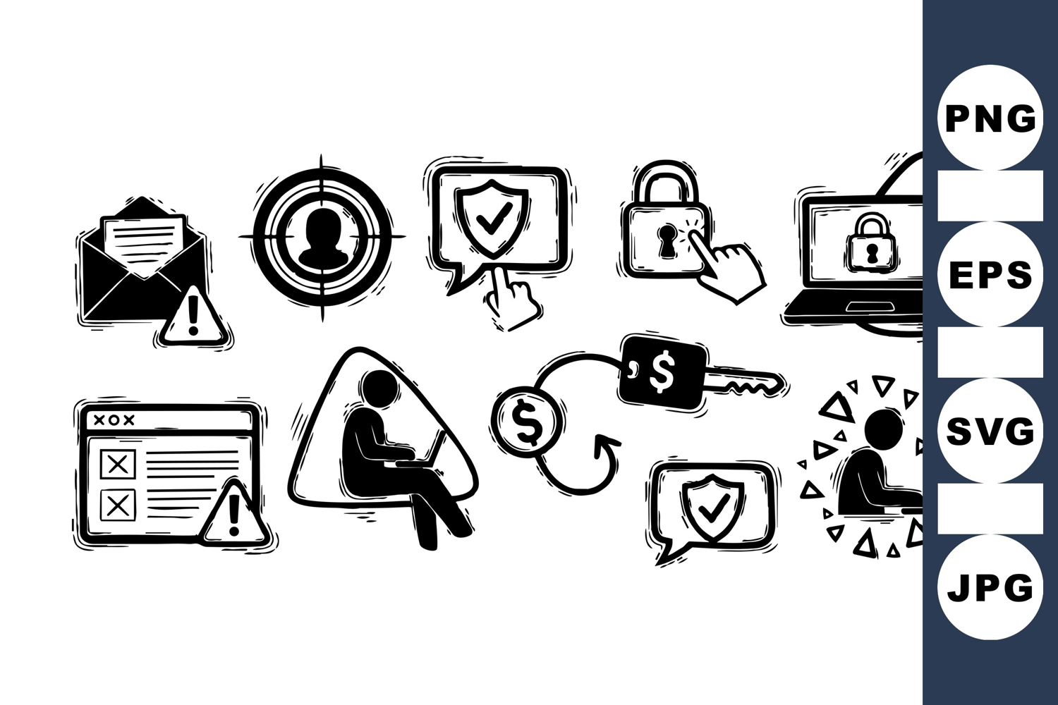 Hand Drawn Icons Security Icon Data Protection Pack Cyber Security Graphics Password Lock Vector Digital Protection Clipart Privacy Shield Icon Online Safety Internet Warning Signs Computer Security Kit