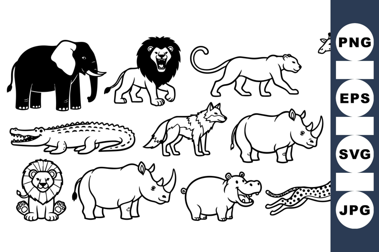 Jungle Animal Clipart Black And White Vector Animal Outline Safari Vector Wildlife Vector Wildlife Animal Clipart Animal Craft Graphics Animal Silhouette Pack Vector Animal Collection Kids Safari Animals