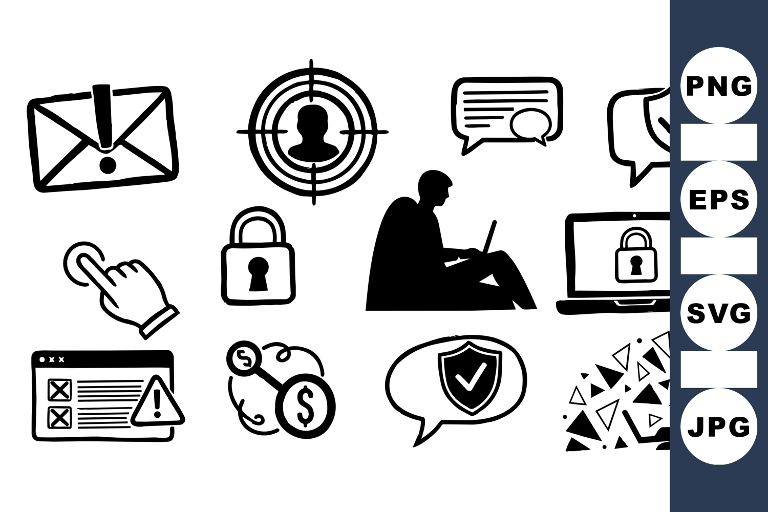 Security Icon Online Safety Icons Digital Communication Icons Digital Security Vector Privacy Protection Clipart Cyber Security Graphics Email Alert Graphics Computer Lock Illustrations User Data Protection Cyber Warning Symbols