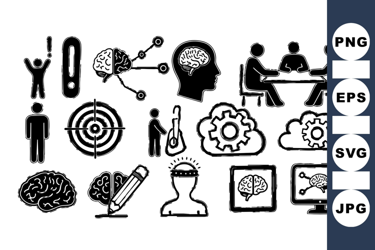 Brain Icon Strategy Planning Icons Network Connection Clipart Idea Concept Vector Mind Thinking Target Goal Symbols Meeting Group Design Creative Innovation Kit Cloud Gear Illustration Pencil Drawing Icons