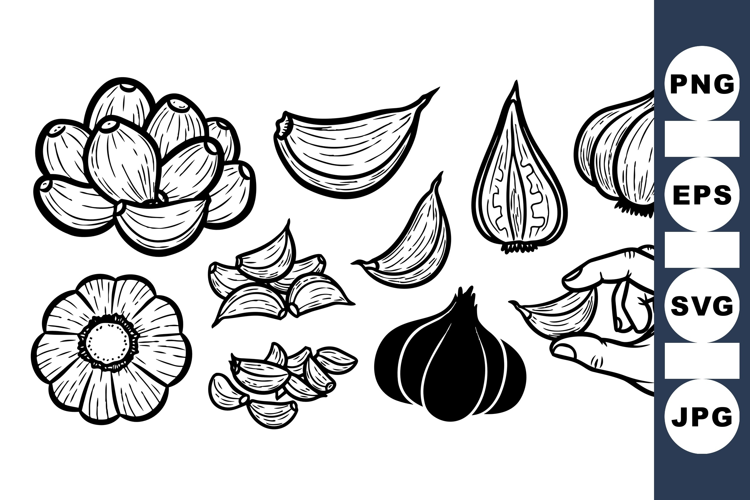 Organic Food Black And White Clipart Rustic Kitchen Decor Kitchen Cooking Graphics Hand Drawn Garlic Culinary Herb Garlic Bulb Clipart Natural Spice Illustrations Vector Garlic Cloves Culinary Ingredient Pack
