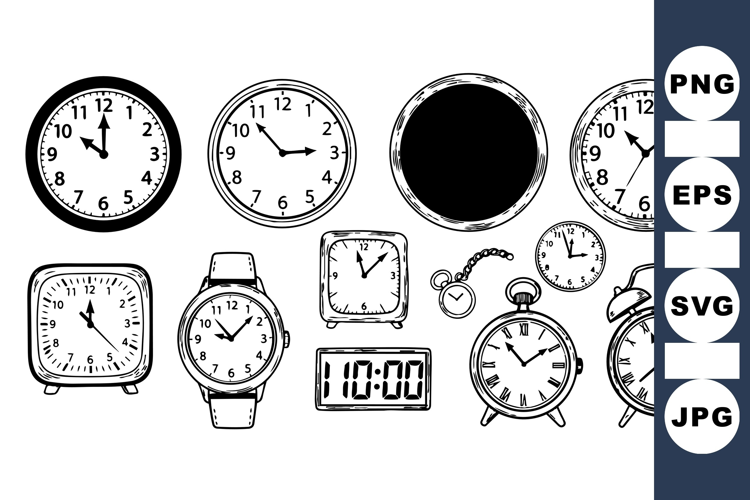 Alarm Clock Design Vintage Clock Clipart Hand Drawn Clock Analog Clock Retro Watch Pocket Watch Art Digital Clock Illustration Classic Clock Graphics Timepiece Clipart Pack Clock Face Artwork