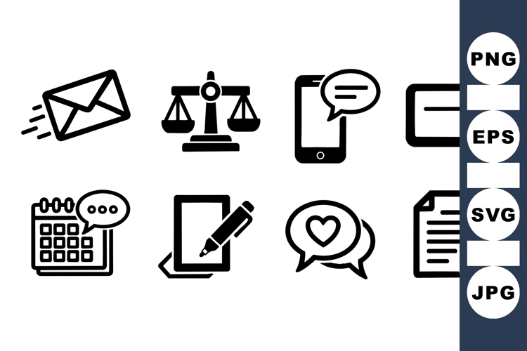 Communication Icon Speech Bubble Icons Simple Black Icons Calendar Schedule Icons Digital Message Icons Pen And Paper Clipart Mobile Chat Graphics Office Document Symbols Legal Scale Icon Tablet Device Graphics