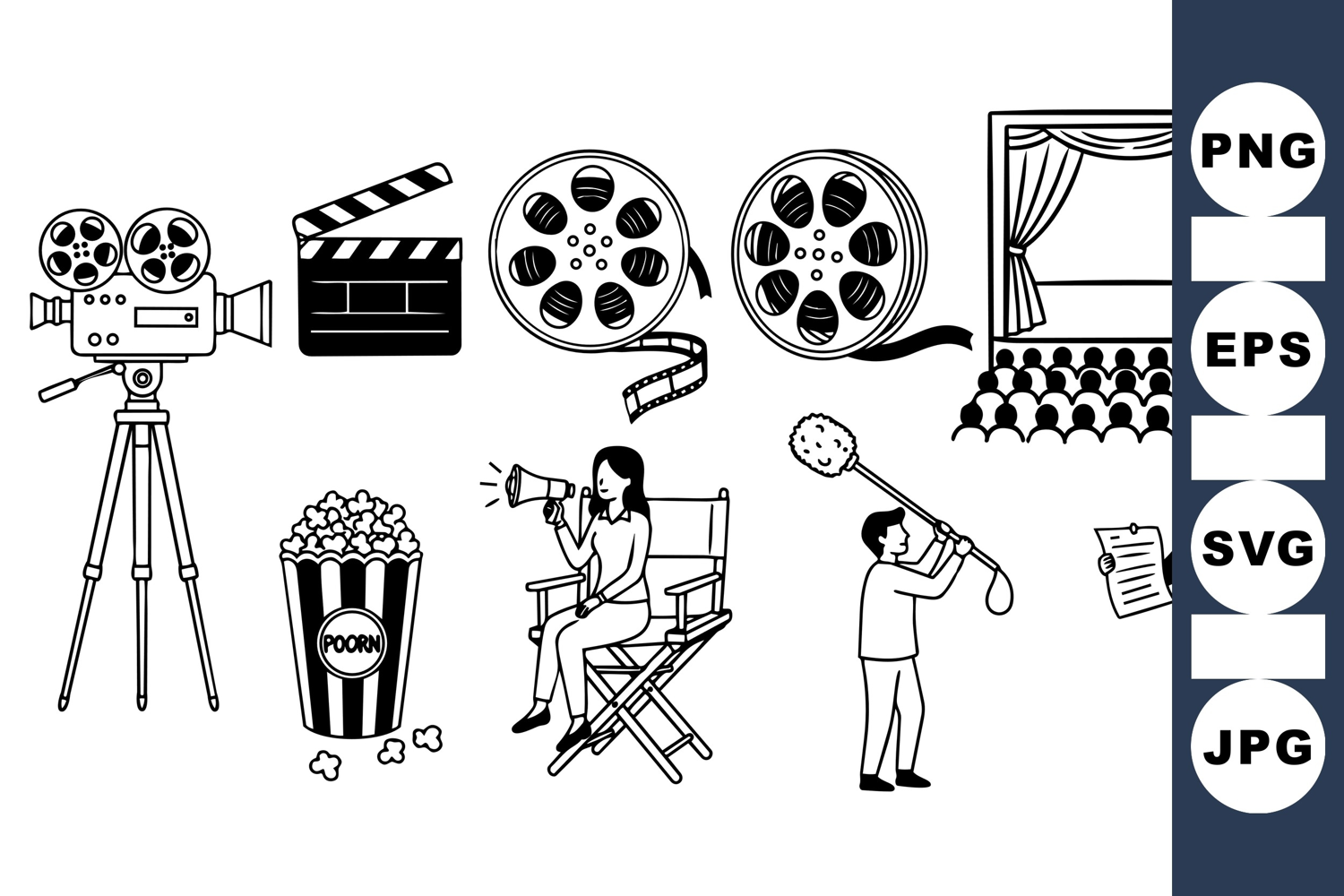 Film Reel Clipart Film Production Movie Camera Icon Popcorn Bucket Design Director Chair Graphic Clapperboard Vector Stage Curtain Illustration Movie Theater Audience Microphone Boom Graphic Actor Script Vector
