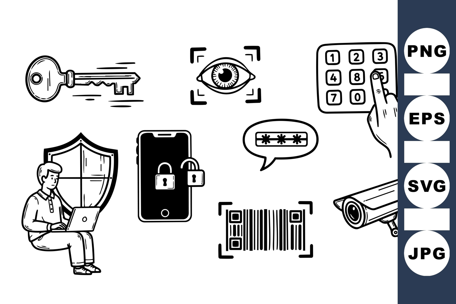 Security Icon Surveillance Camera Graphic Password Protection Icon Data Protection Graphics Secure Access Vector Digital Privacy Vector Cybersecurity Clipart Pack Barcode Scan Illustration Authentication Code Design Identity Security Icons