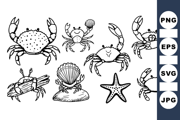 Sea Life Clipart Nautical Vector Crab Digital Beach Animal Ocean Creature Design Marine Clipart Pack Shell And Starfish Hand Drawn Crab Coastal Svg Graphics Line Art Sea Animals