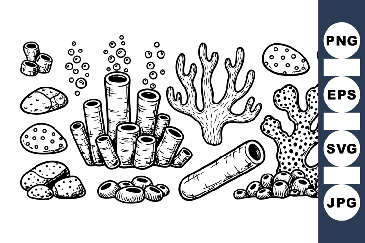 Hand Drawn Coral Reef Vector Clipart for Crafts