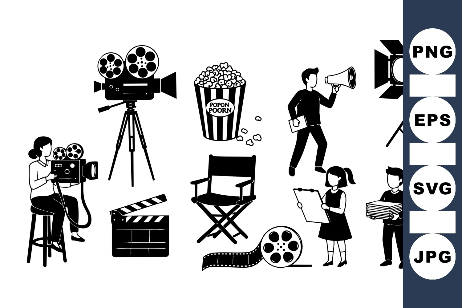 Movie Director Film Production Movie Film Clipart Cinema Equipment Pack Retro Movie Clipart Classic Film Illustrations Vintage Cinema Graphics Film Studio Graphics Movie Scene Collection Popcorn And Chair