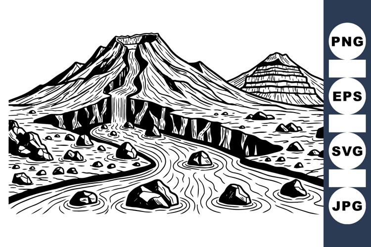 Similar Design Products to Black And White Mountain River Landscape Vector