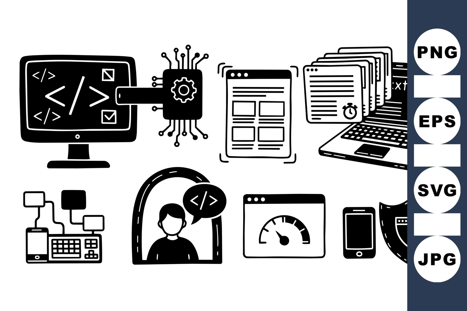 Coding Icon Software Development Technology Vector Pack Mobile Device Graphics Programming Design Kit Developer Icon Collection Tech User Interface Digital Security Icon Performance Speed Icons Hardware Chip Illustration