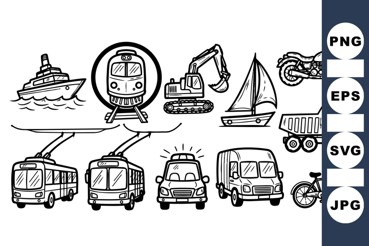 Hand Drawn Transport Vehicle Clipart for Crafts
