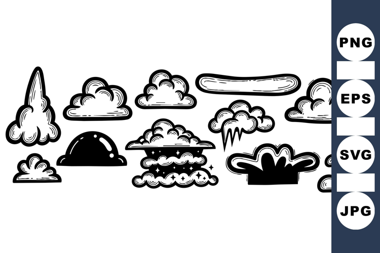 Black And White Vector Outline Cloud Hand Drawn Clouds Cartoon Cloud Clipart Weather Cloud Retro Cloud Icons Sky Vector Graphics Cloud Silhouette Pack Vintage Weather Design Cloud Shapes Collection