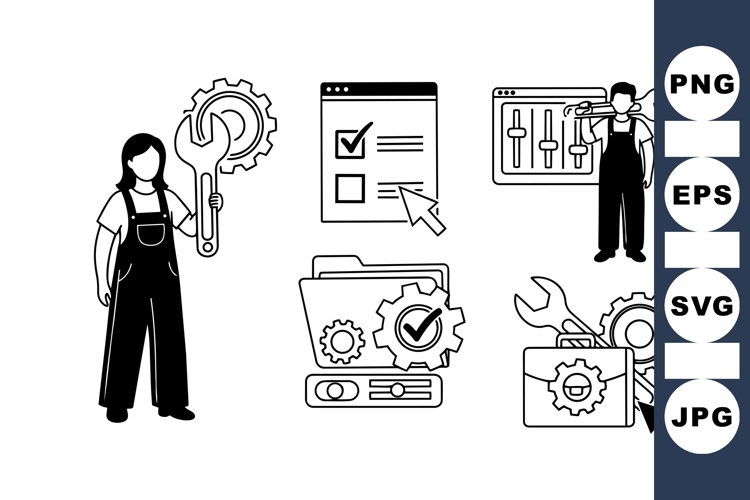 Maintenance Icon Mechanic Vector Workflow Management Customer Service Icons Professional Vector Icons Repair Tools Graphics Web Interface Icons Technical Support Icons Digital Service Pack Office Workflow Graphics