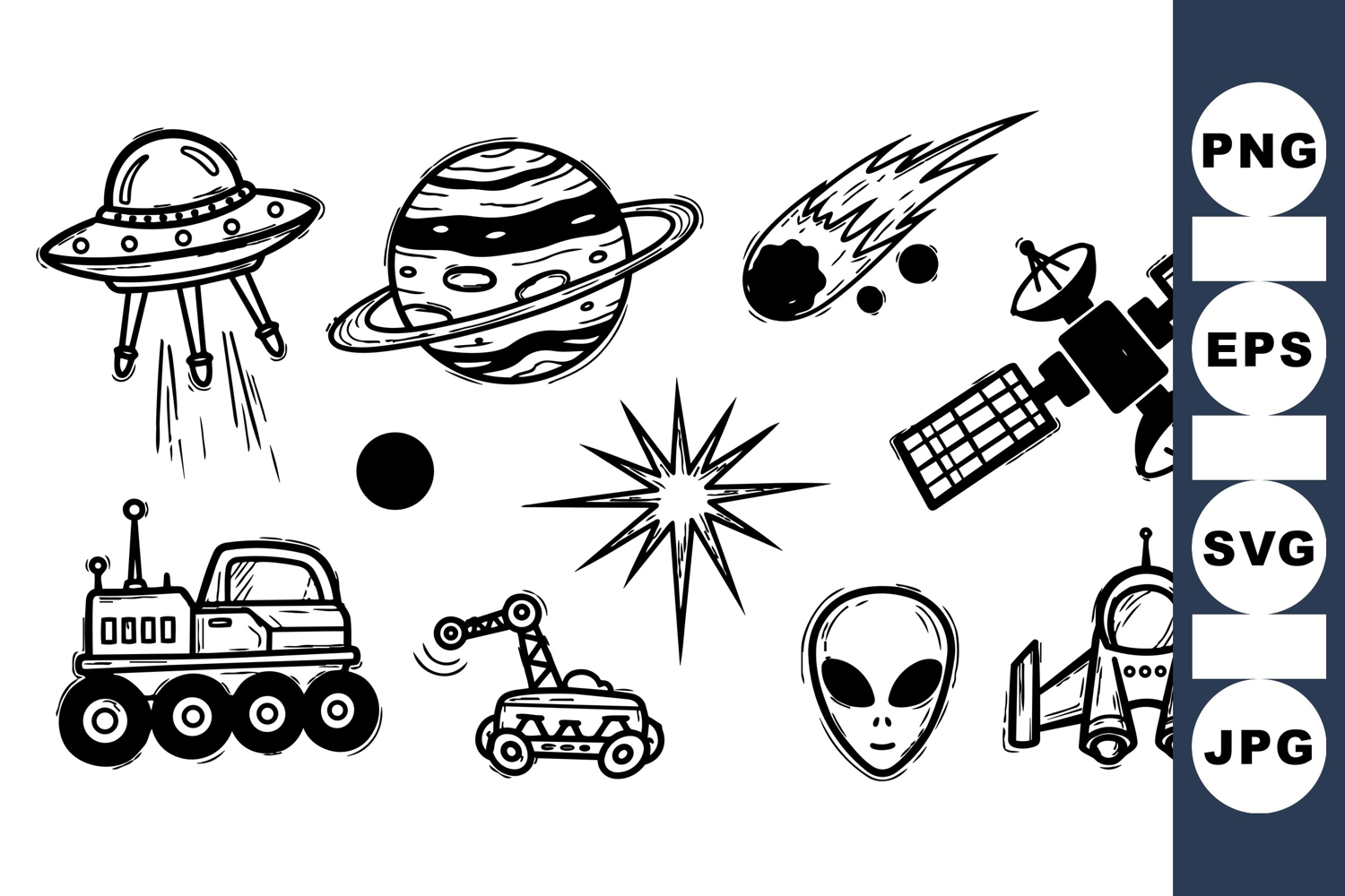 Solar System Vector Space Exploration Clipart Rocket Ship Illustrations Space Rover Graphics Hand Drawn Space Vectors Ufo And Alien Clipart Planet And Satellite Art Cosmic Space Elements Astronomy Theme Designs Outer Space Clipart Pack