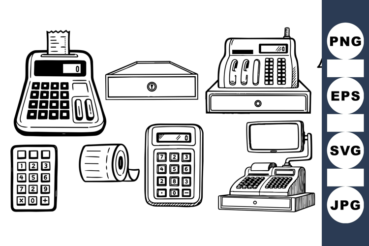 Hand Drawn Cash Register Clipart For Business Designs example image 1