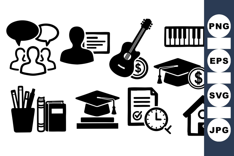 Learning Vector Icons Education Icon School Supplies Clipart Time Management Icon Musical Instrument Icons Music Icon Collection Graduation Cap Symbol Study Tools Svg Exam Checklist Design Home School Graphics