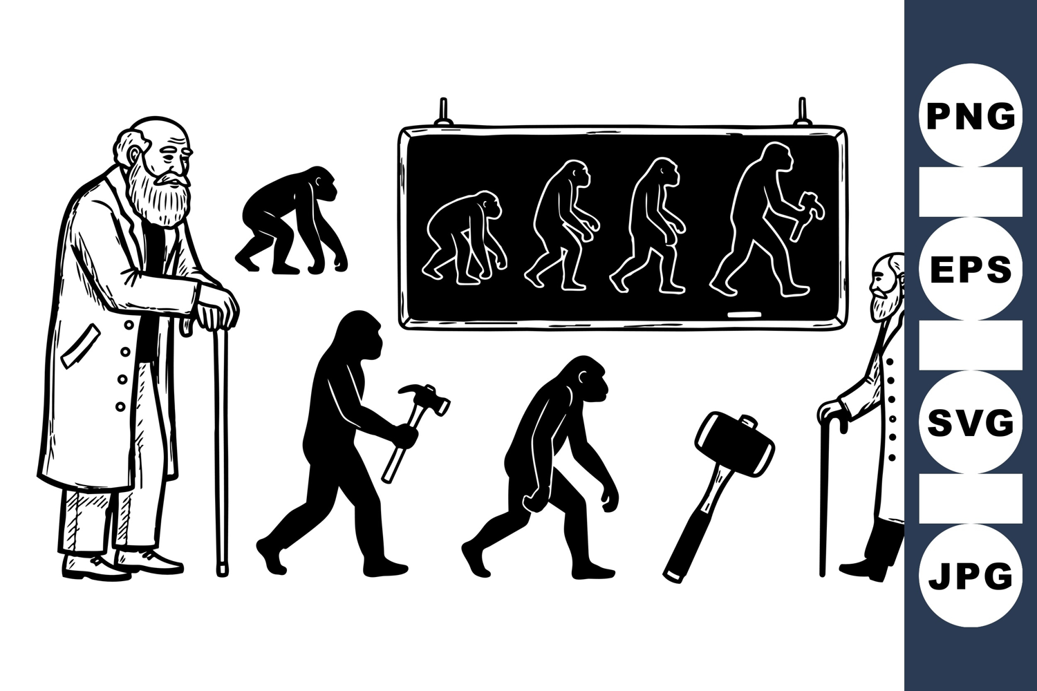 Biology Education Graphics Human Evolution Clipart Scientific Sketch Evolutionary Stages Prehistoric Tool Illustrations Primitive Man Drawings Science Research Clipart Historical Evolution Study Timeline Graphics Hand Drawn Ape
