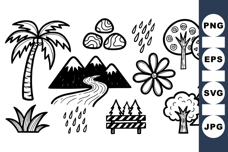 Hand Drawn Nature Doodle Clipart for Crafts
