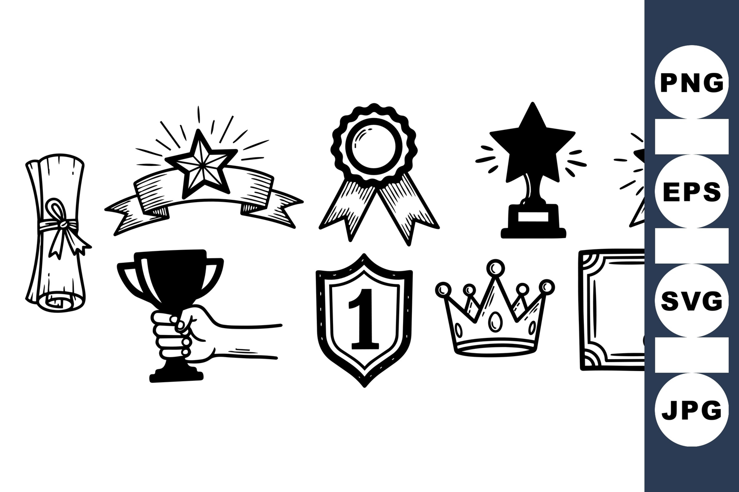 Celebration Icon Winner Trophy Ribbon Badge Clipart Hand Drawn Award Competition Medal Trophy Icon Pack Scroll Certificate Design Star Prize Graphics Champion Crown Svg Victory Reward Clipart