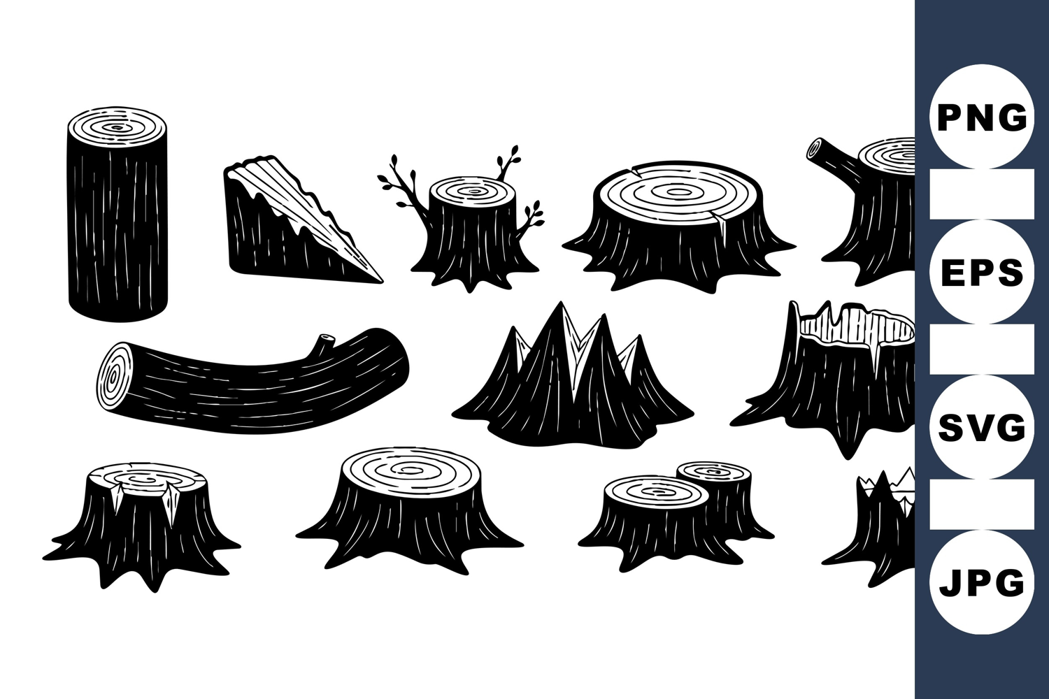 Rustic Hand Drawn Wood Logs and Stumps Vector example image 1