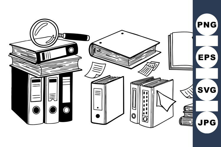 File Folder Graphics Office Organization Black White Clipart Book Stack Illustration Office Binder Clipart Document Paper Clipart Line Art Office Study Materials Pack Desk Supplies Clipart Research Tool Graphics