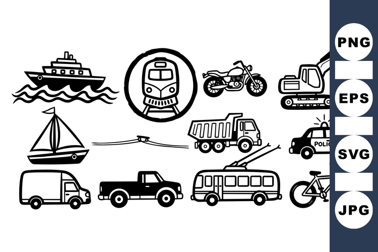 Vehicle Clipart Motorcycle Vector Urban Transport Police Car Illustration Public Transport Icons Cargo Transport Graphics Heavy Machinery Icons Transport Icon Pack Construction Vehicle Vector Boat And Ship Clipart