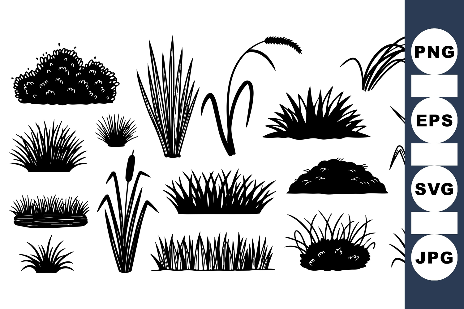 Minimal Foliage Simple Plant Graphics Grass Silhouette Clipart Vector Nature Elements Black Bush Graphics Reed Plant Vectors Garden Landscape Clipart Wetland Nature Wild Grass Illustrations Shrubs Silhouette Pack