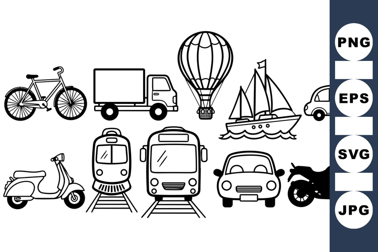 Transportation Svg Black And White Clipart Transport Icons Transport Clipart Pack Vehicle Clipart Collection Transport Vehicle Clipart Line Art Vehicle Travel Transport Graphics Commute Vehicle Illustrations Line Drawing Transport