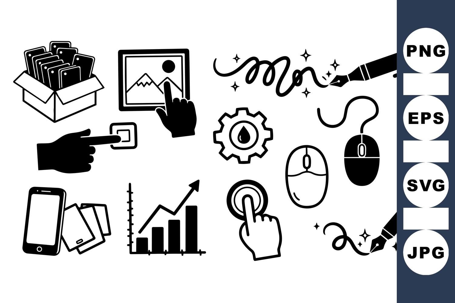 Interactive Icon Digital Interface Icons Technology Vector Pack Click Button Graphics User Interface Elements Touch Screen Icons Mobile Device Clipart Hand Cursor Illustrations Mouse Pointer Vectors Stylus Pen Drawings