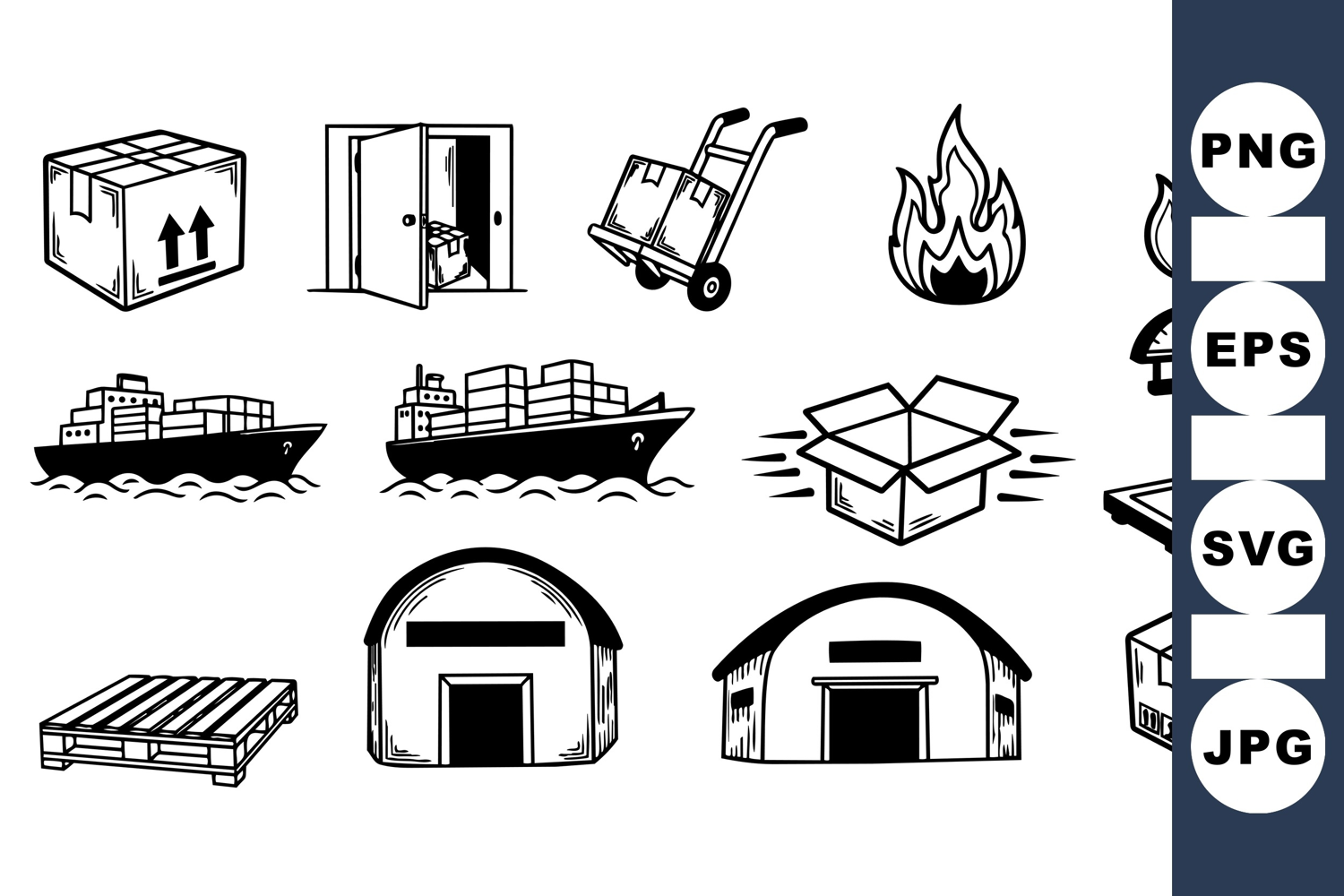 Shipping Icon Transportation Icon Cargo Shipping Icons Delivery Service Graphics Logistics Vector Warehouse Clipart Pack Freight Handling Package Shipping Clipart Hand Truck Icon Inventory Management Graphics