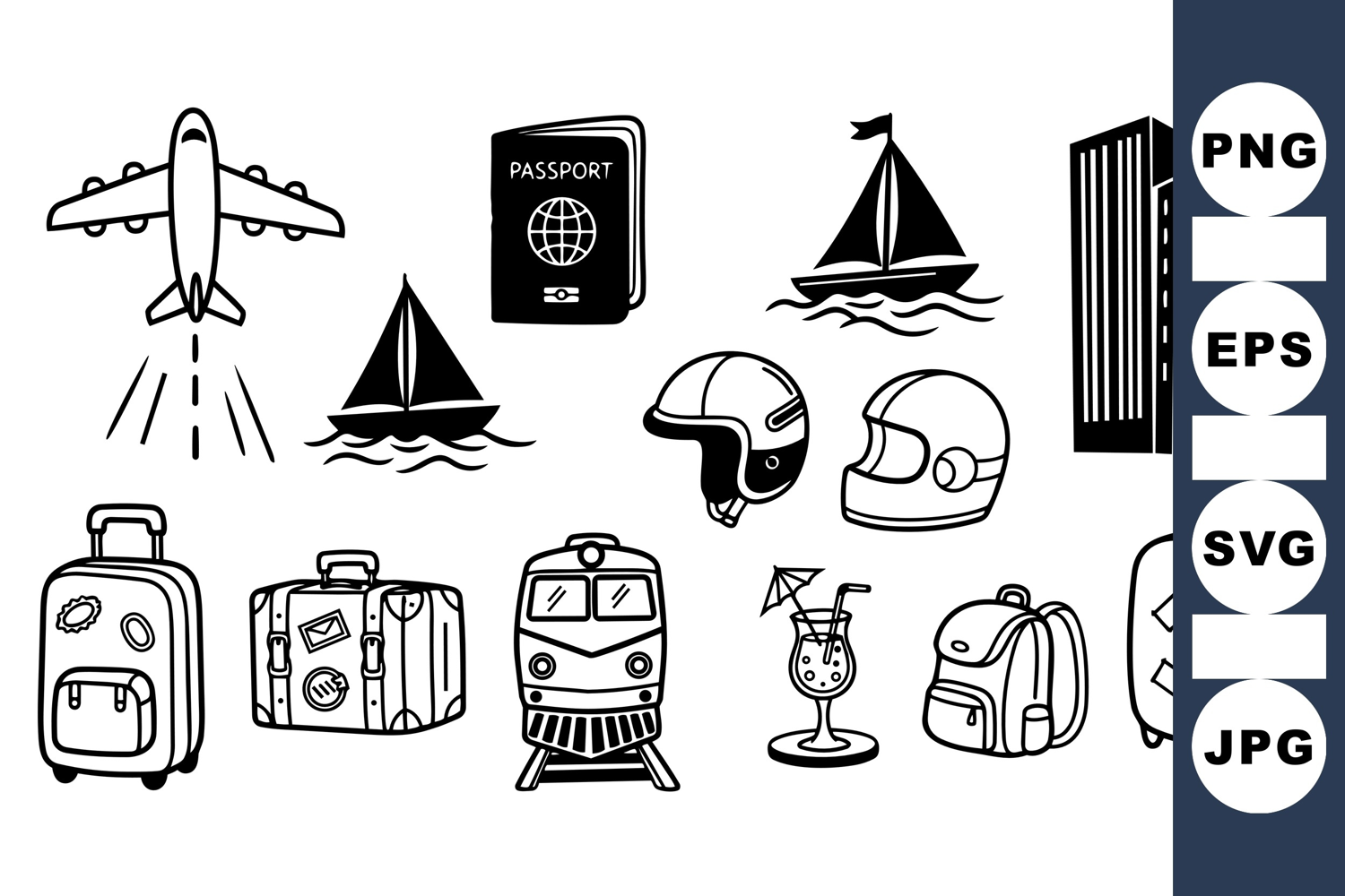Hand Drawn Travel Icon Clipart for Vacation Designs