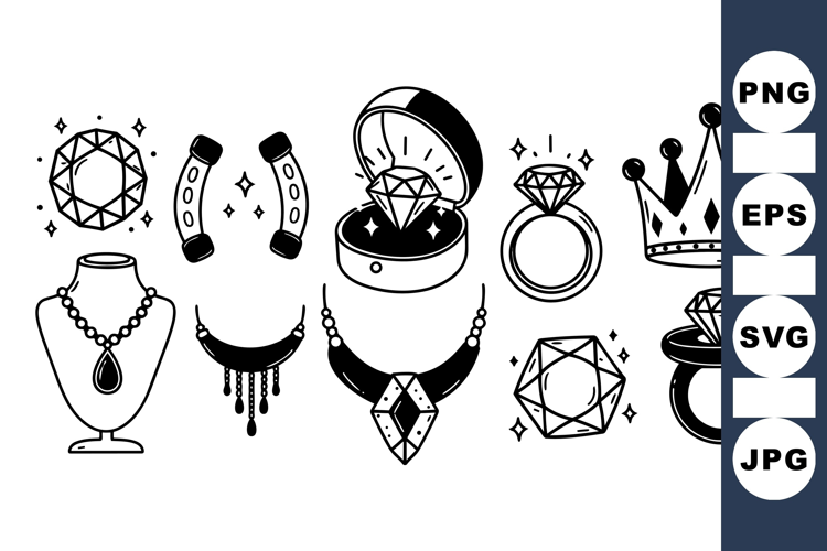 Luxury Jewelry Diamond Ring Clipart Shiny Diamond Black And White Jewelry Elegant Necklace Design Sparkling Gemstone Clipart Crown Decoration Clipart Minimalist Accessory Precious Gem Artwork Classic Jewelry Pack